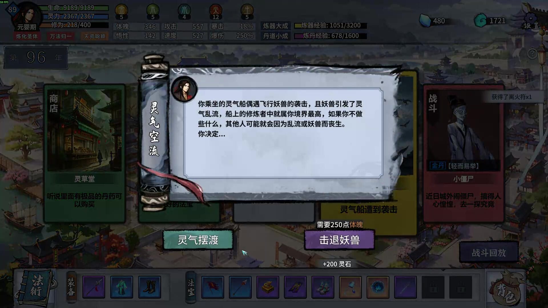 修仙路上总是充满危险,你将会遭遇必然发生的宿命之战,战胜他们就可以继续走下去,如果不幸陨落则会重入轮回。所以在大战来临之前,一定要合理安排好你的时间,预留足够的丹药,管理好法术的释放顺序,踏着这些对手登仙成神!